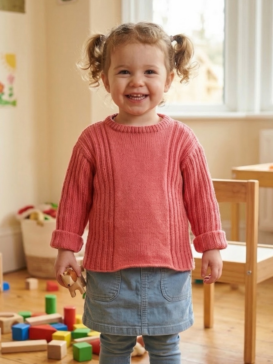 Pullover med dobbelt retstrik og kabelstrik til familien