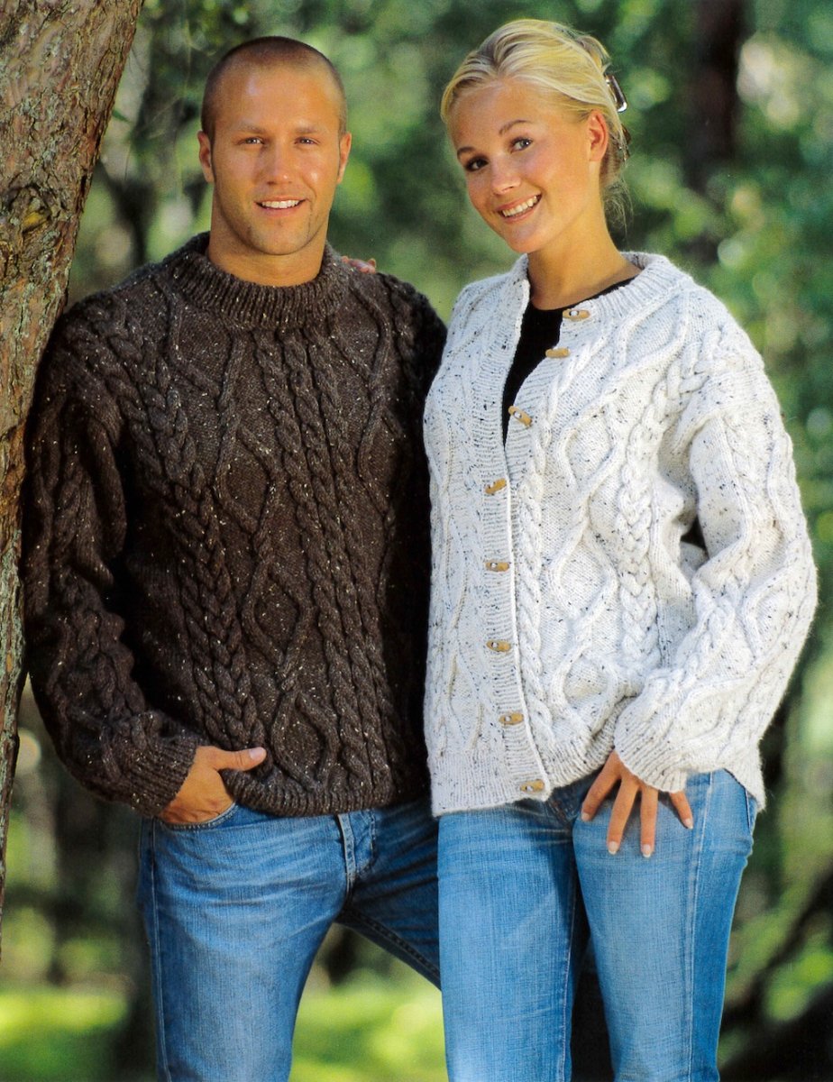 Pullover eller cardigan: 14 (15) 16 (17) 18 n. (fg 1736 hvid / 1719 mørkebrun)