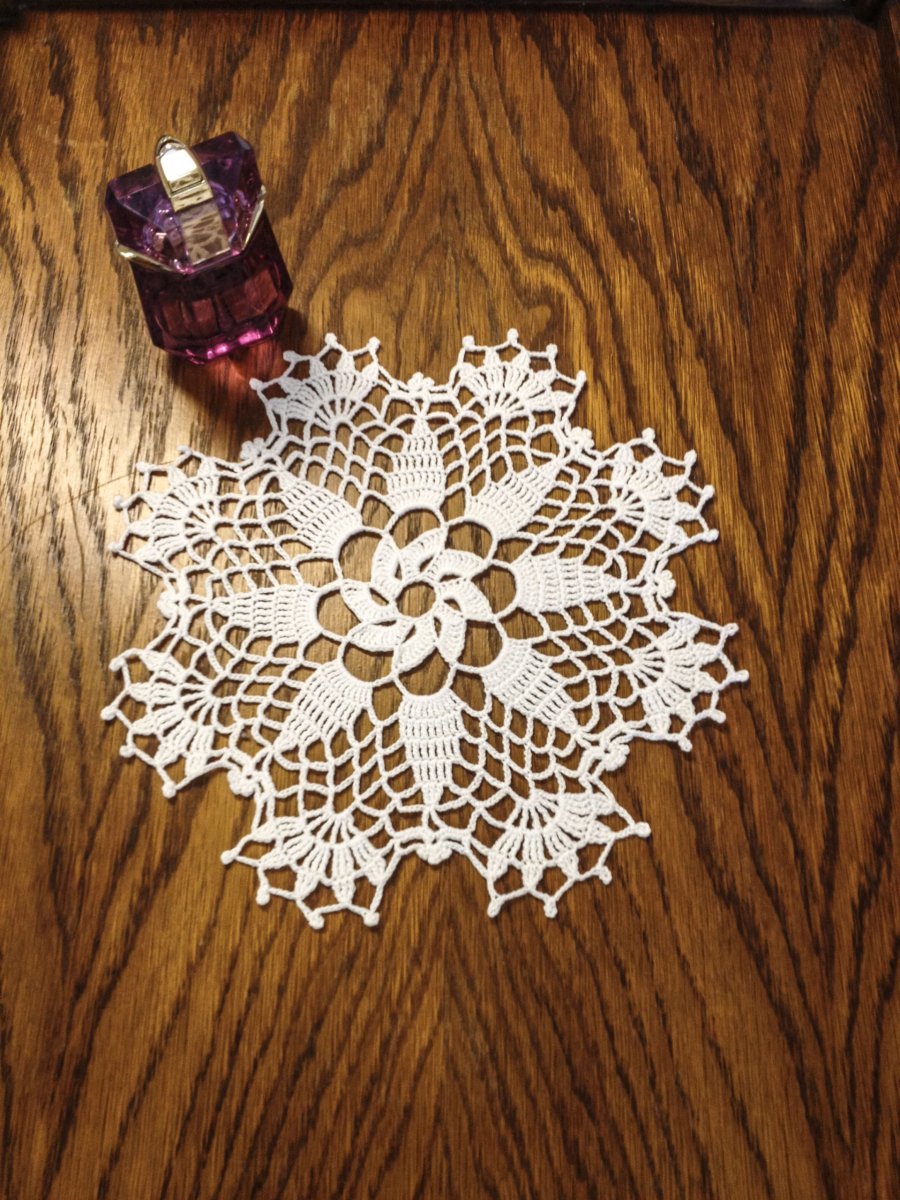 Linned med hæklede blomster