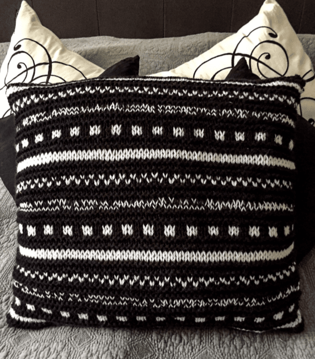 Sweater med bærestykkemønster