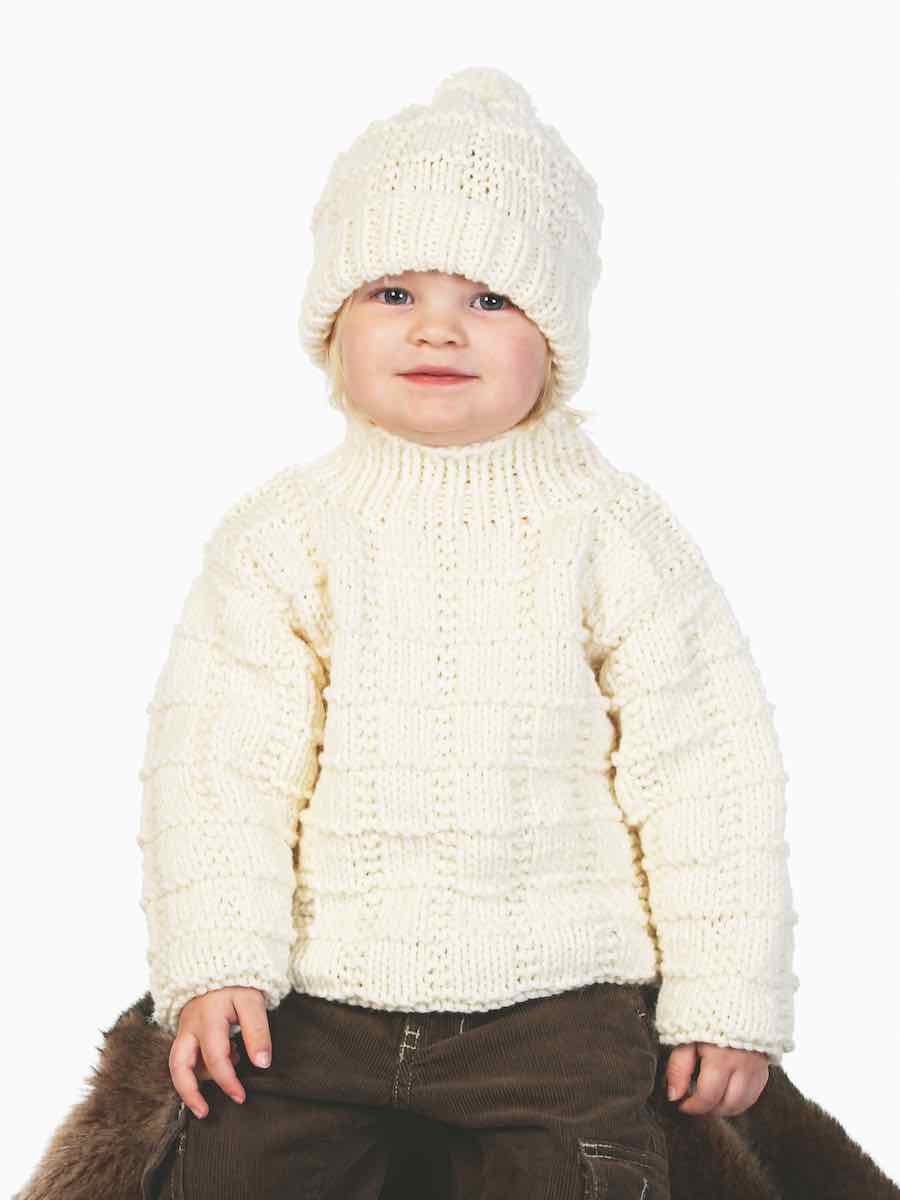 Børnepullover, cardigan, hue, vanter og halstørklæde