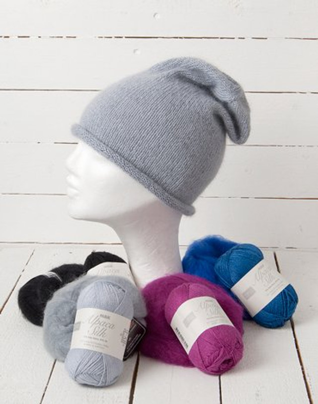 Huen er strikket i M&K Kid Mohair og Alpaca Silk.