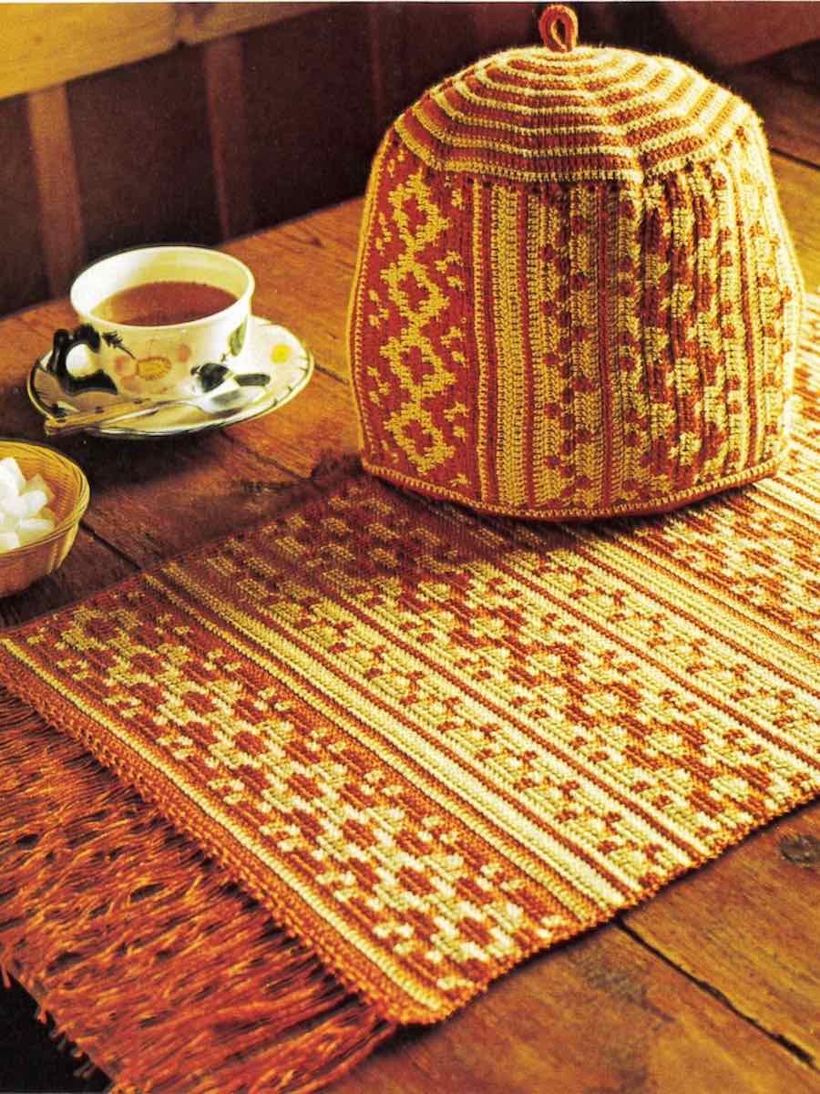 Størrelse: Løber ca. 37 × 105 cm + frynser. Tekande, højde ca. 24 cm, omkreds ca. 62 cm.