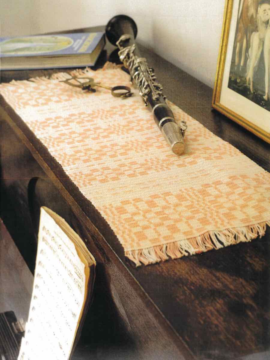 Hæklet løber i to farver med grafisk ternmønster. Hæklet med stangmasker og luftmasker efter diagrammet.