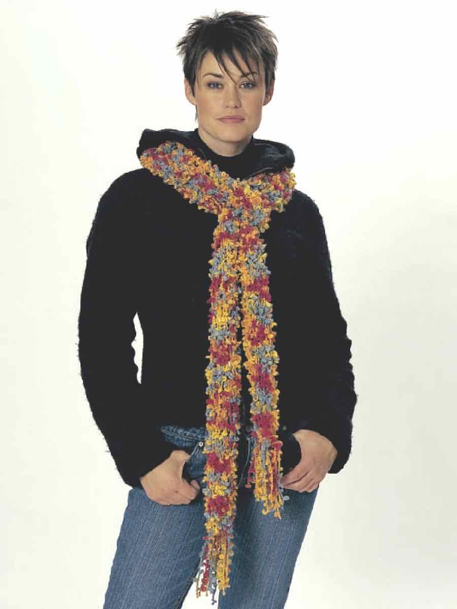 Fire tørklædemodeller i luftigt garn: lige, smalt eller bredt, og et trekantet sjal. Strik i glatstrik med grove pinde. Enkel udtagningsteknik og farveskift giver variation. Afslut med frynser eller kvast for en flot finish.