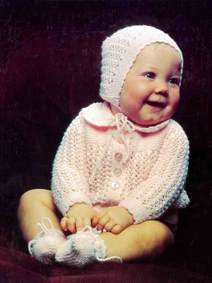 Sæt med cardigan, bukser, hue og sokker i Piggelen garn. Alle dele strikkes nedefra og op med elastik. Raglanærmer på cardiganen, en løs pasform på bukserne og klassiske accessories. Perfekt til babystørrelser fra 3 til 18 måneder.