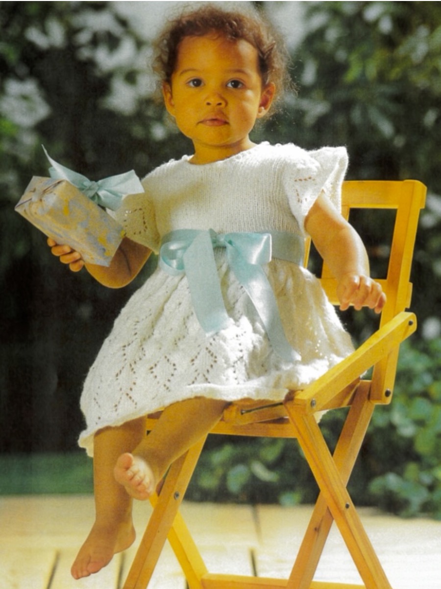 Kjolen strikkes oppefra og ned, og skuldrene på bagstykket strikkes i rib. Stykkerne samles og strikkes ned til taljen. Nederdelen er lavet ved at øge antallet af masker betydeligt, hvilket giver en flot vidde, og er dekoreret med et diamantmønster i henhold til diagrammet. Forstykket strikkes på lignende måde med en formet halsudskæring. Til sidst samles masker op til dekorative ærmegabskanter, og kjolen er dekoreret med knapper og et bånd.