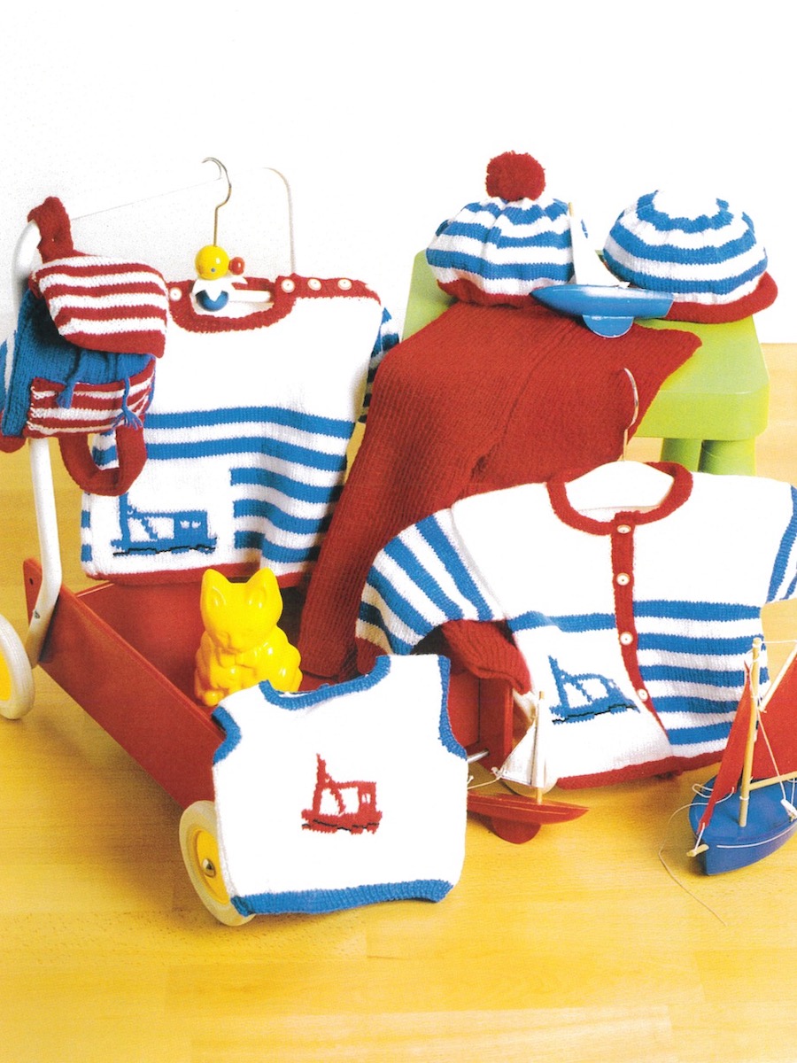 Sweater, cardigan, tanktop, bukser, hatte og rygsæk