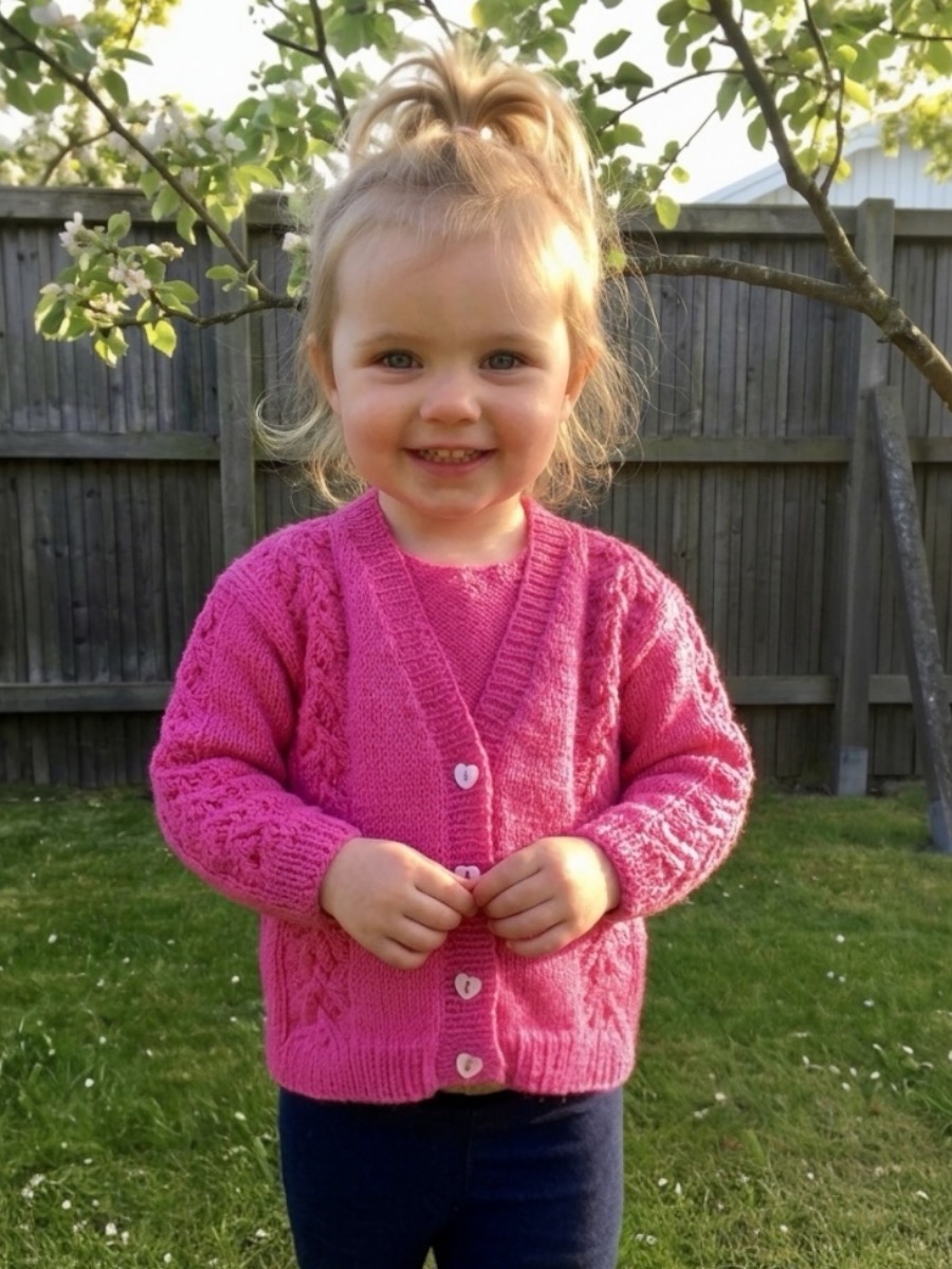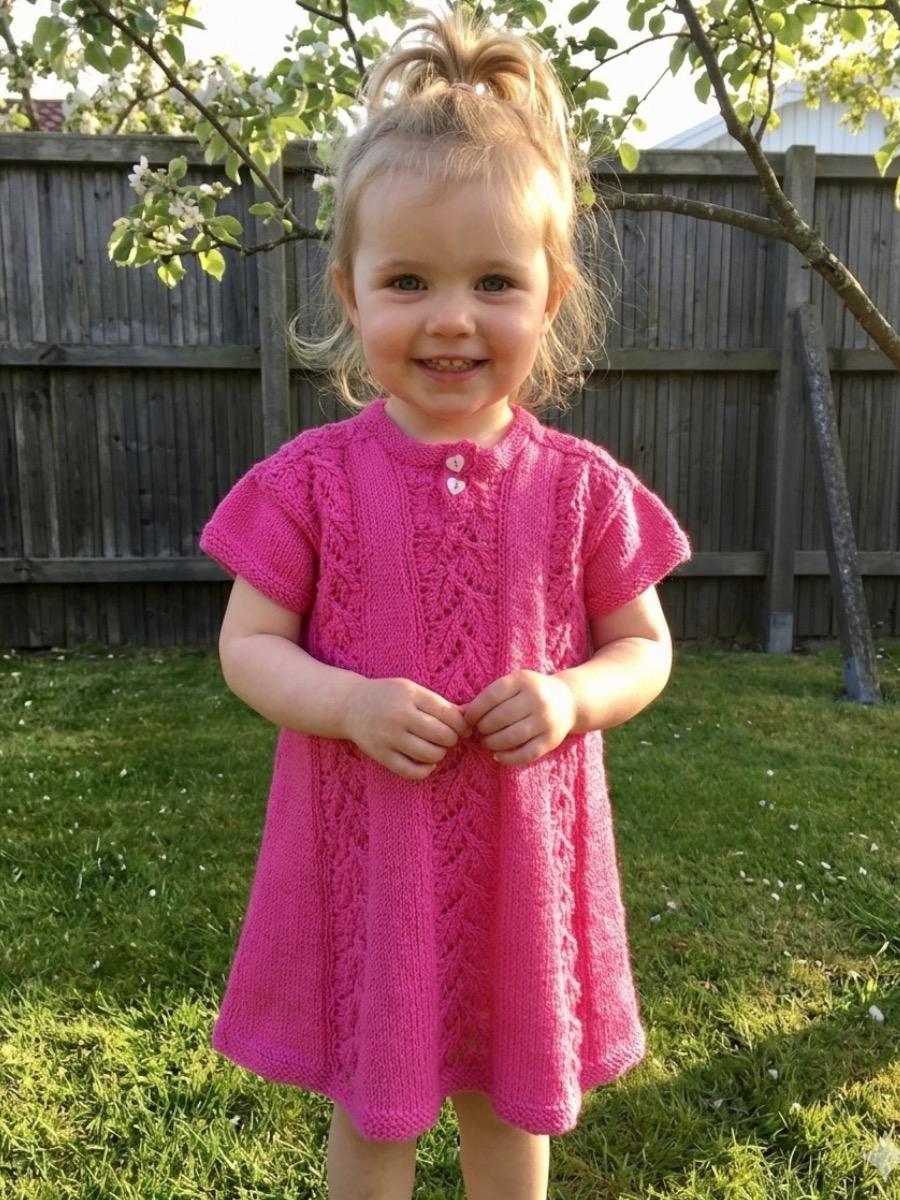 Tilbehør: 3-5 knapper til cardigan. 2-3 knapper til kjole