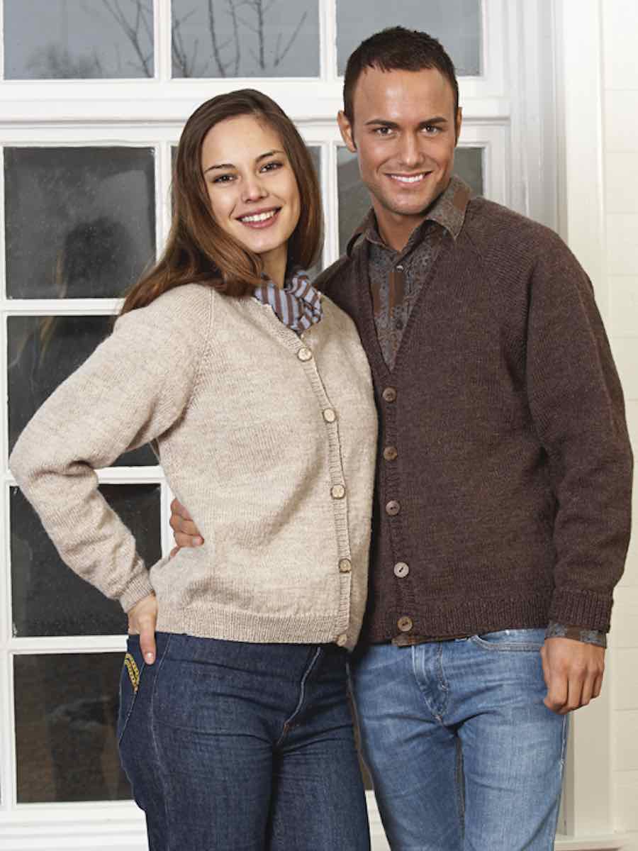 Tilbehør: Cardigan, rund hals: 6 (6) 7 (7) 7 knapper. Cardigan, V-hals: 4 (4) 5 (5) 5 knapper.