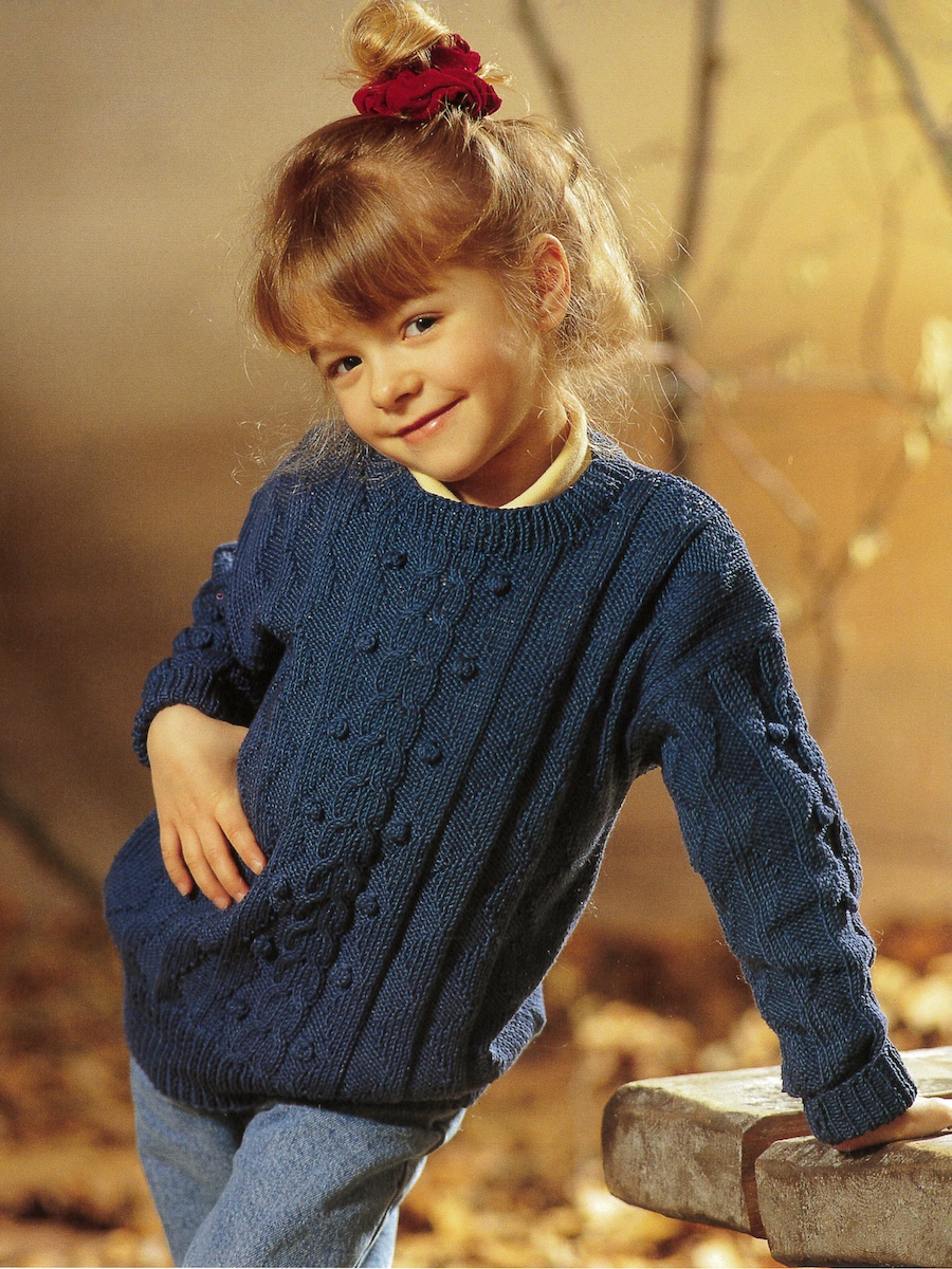 Strik sweateren efter diagrammet med snoninger og rib. Ryg og forstykke strikkes i glatstrik, med masker lukket af til hals og ærmegab. Ærmerne strikkes separat og sys på. Afslut med en halskant.