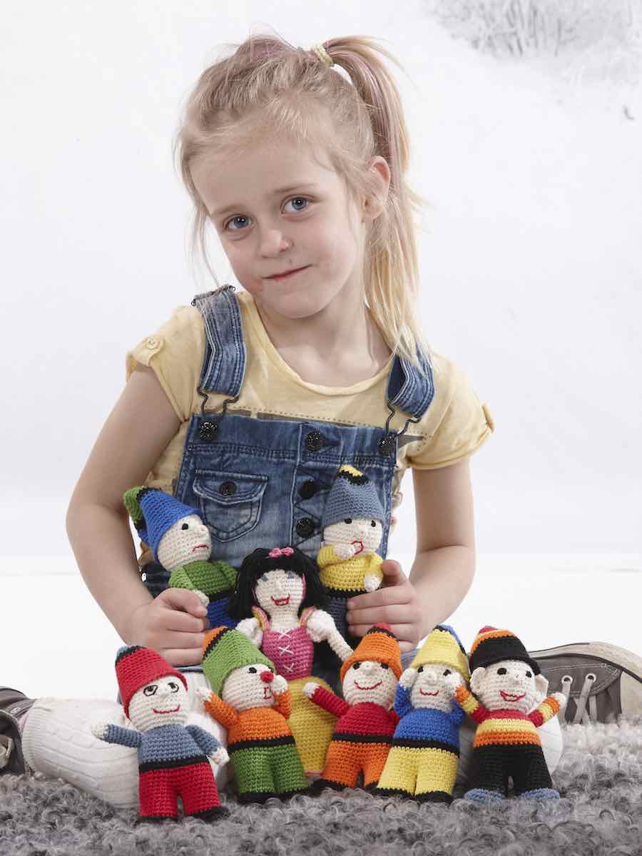 Størrelse: Dværgene er omkring 12 cm høje, Snehvide er omkring 19 cm høje.