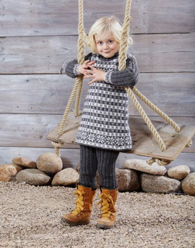 Tøjet er strikket i Superwash Safir.