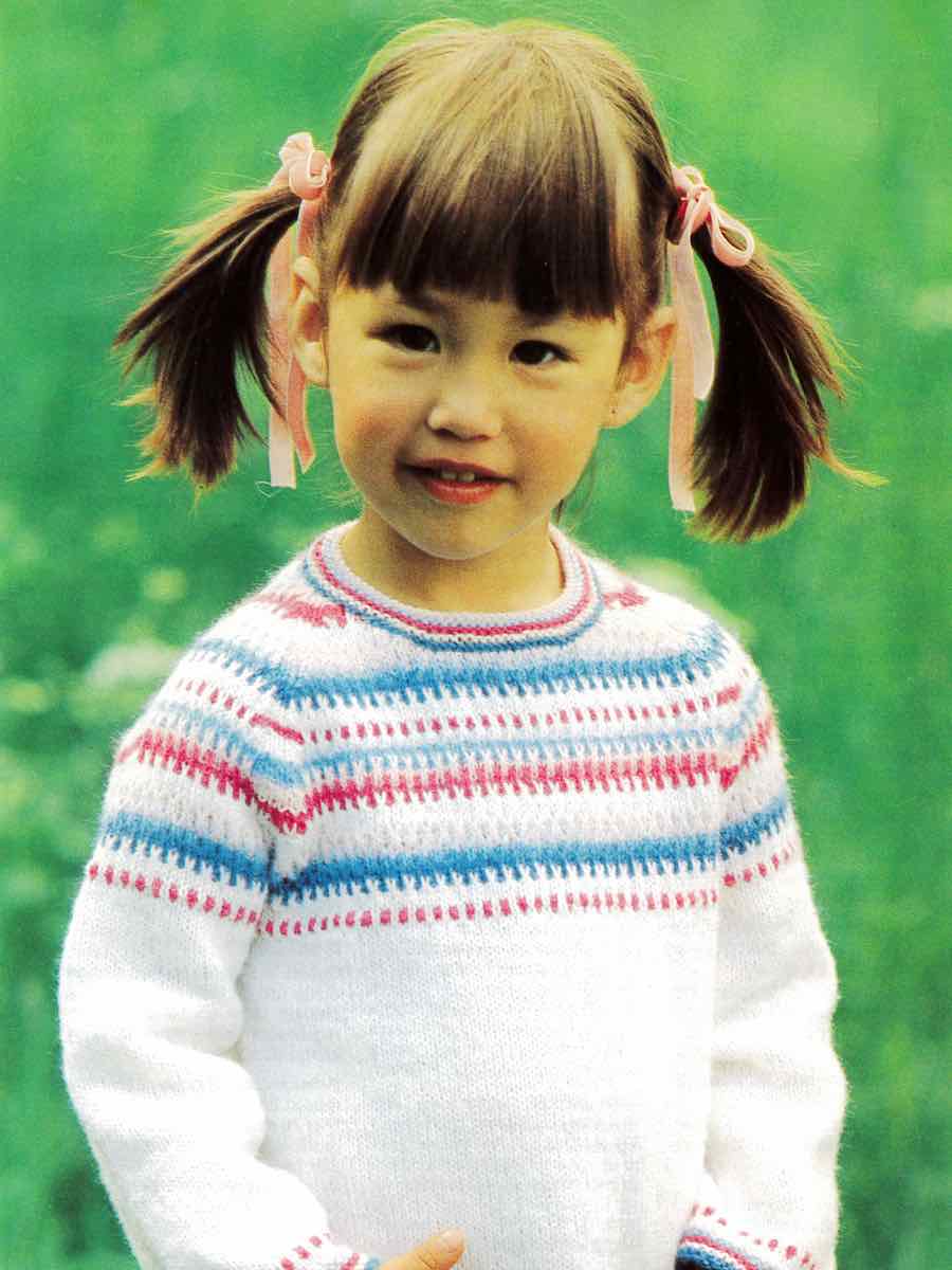 Trøje i flerfarvet mønster med prikker. Strik nedefra og op med rib, glatstrik og diagrammer. For- og bagstykket har raglanindtagninger, ærmerne er syet fast. Halsudskæringen strikkes i rib fra opsamlede masker.