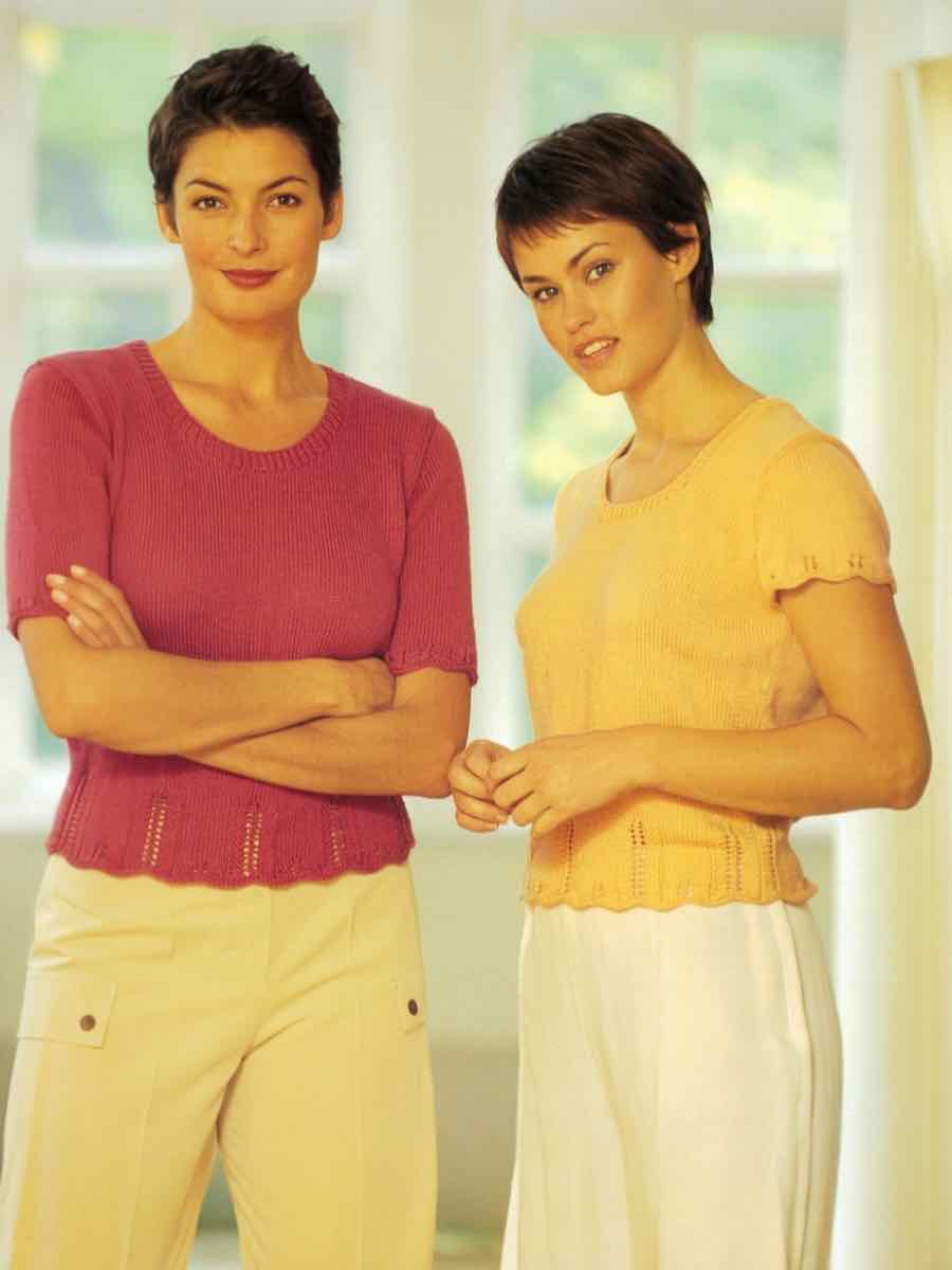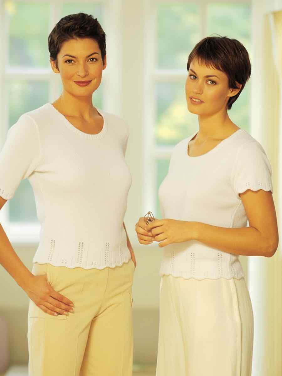Trøjerne strikkes i rib, derefter følger man mønsteret med ret- og vrangpinde. Form hals og ærmer ved at tage ud og ind. Saml delene og afslut med halsudskæring og kanter for en glat afslutning.