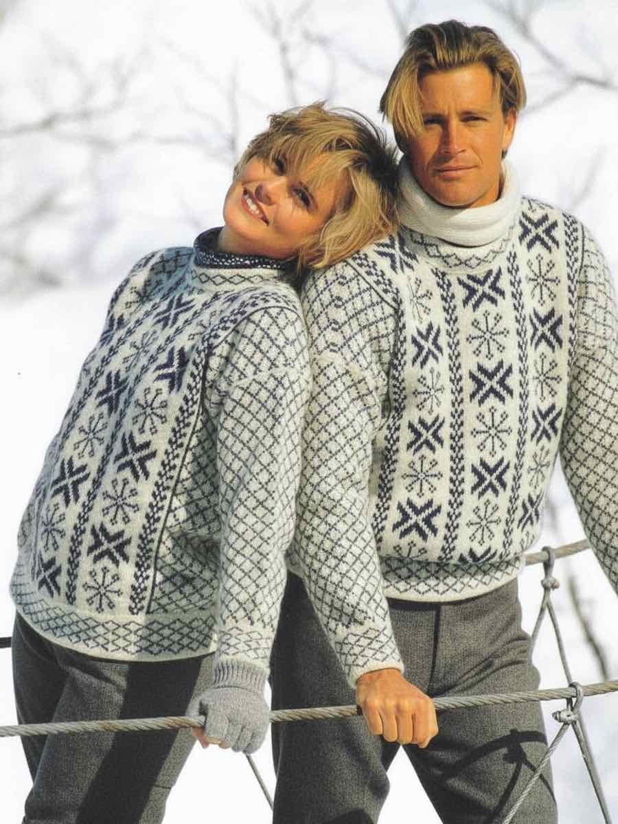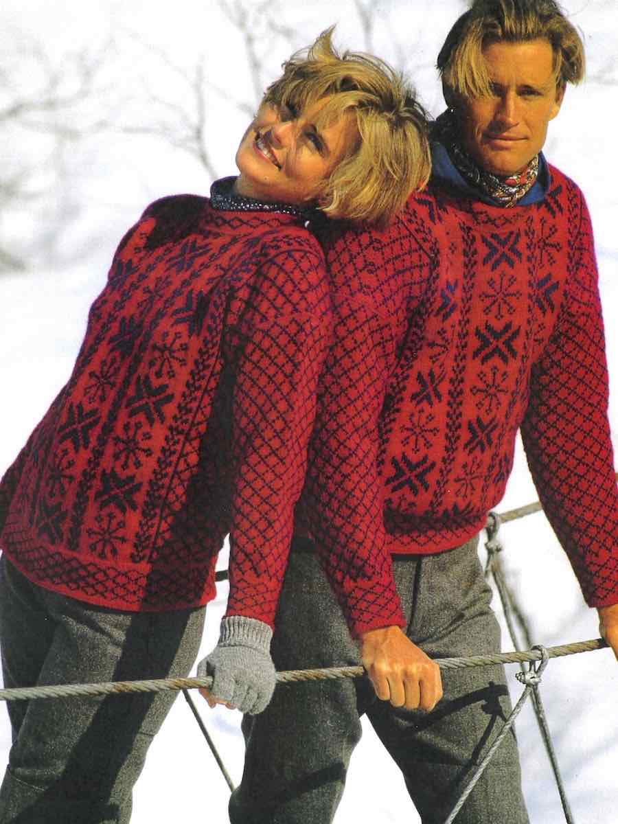 Trøjerne er strikket med to farver, der danner et flot mønster.
