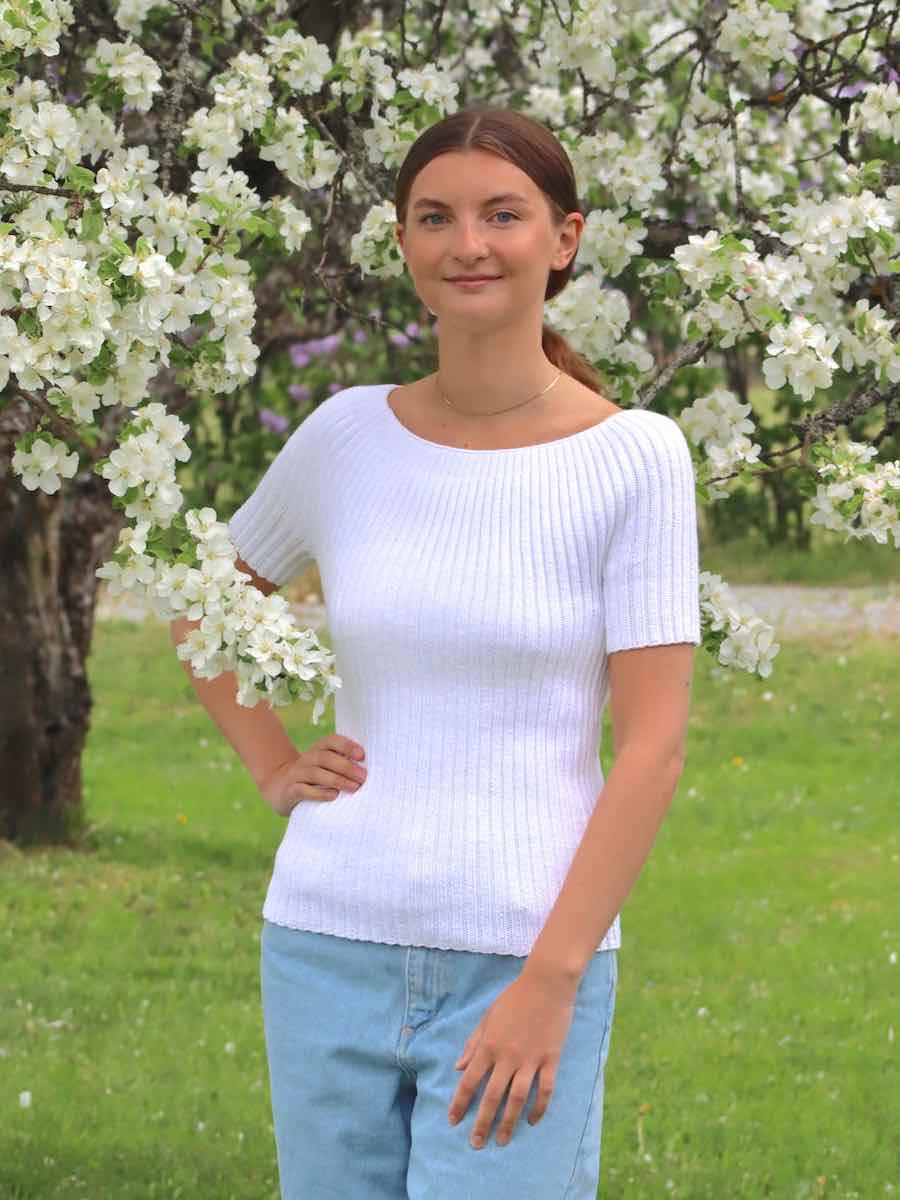 Sweateren strikkes rundt på rundpinde i elastik, hvilket giver en blød og fleksibel pasform. Ærmerne strikkes separat og sys eller strikkes sammen med kroppen. Halsudskæringen formes ved at lukke af.