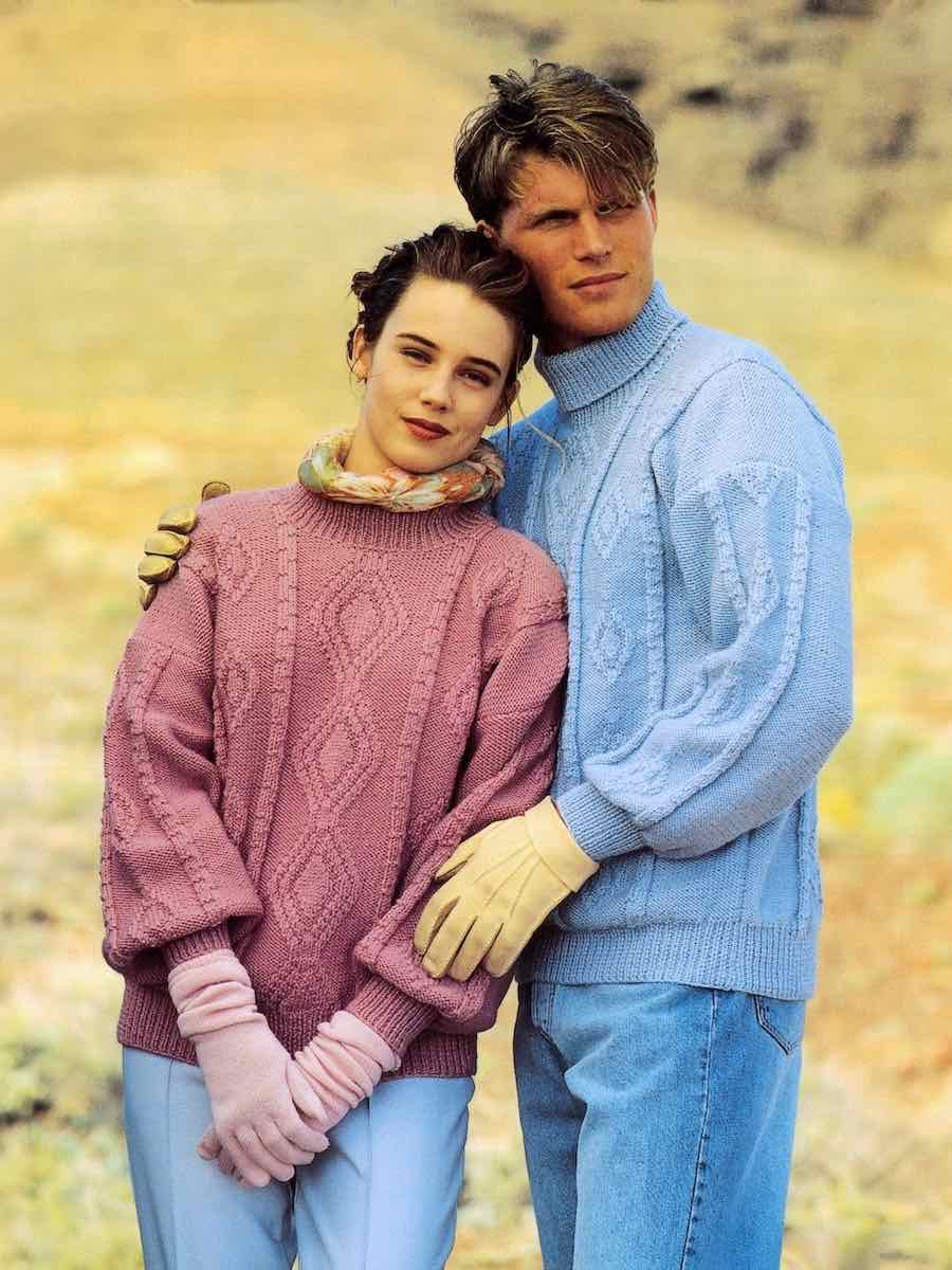 Trøjer strikket i dele, der er syet sammen. Tøjet har forskellige halsudskæringer og strukturelle mønstre.