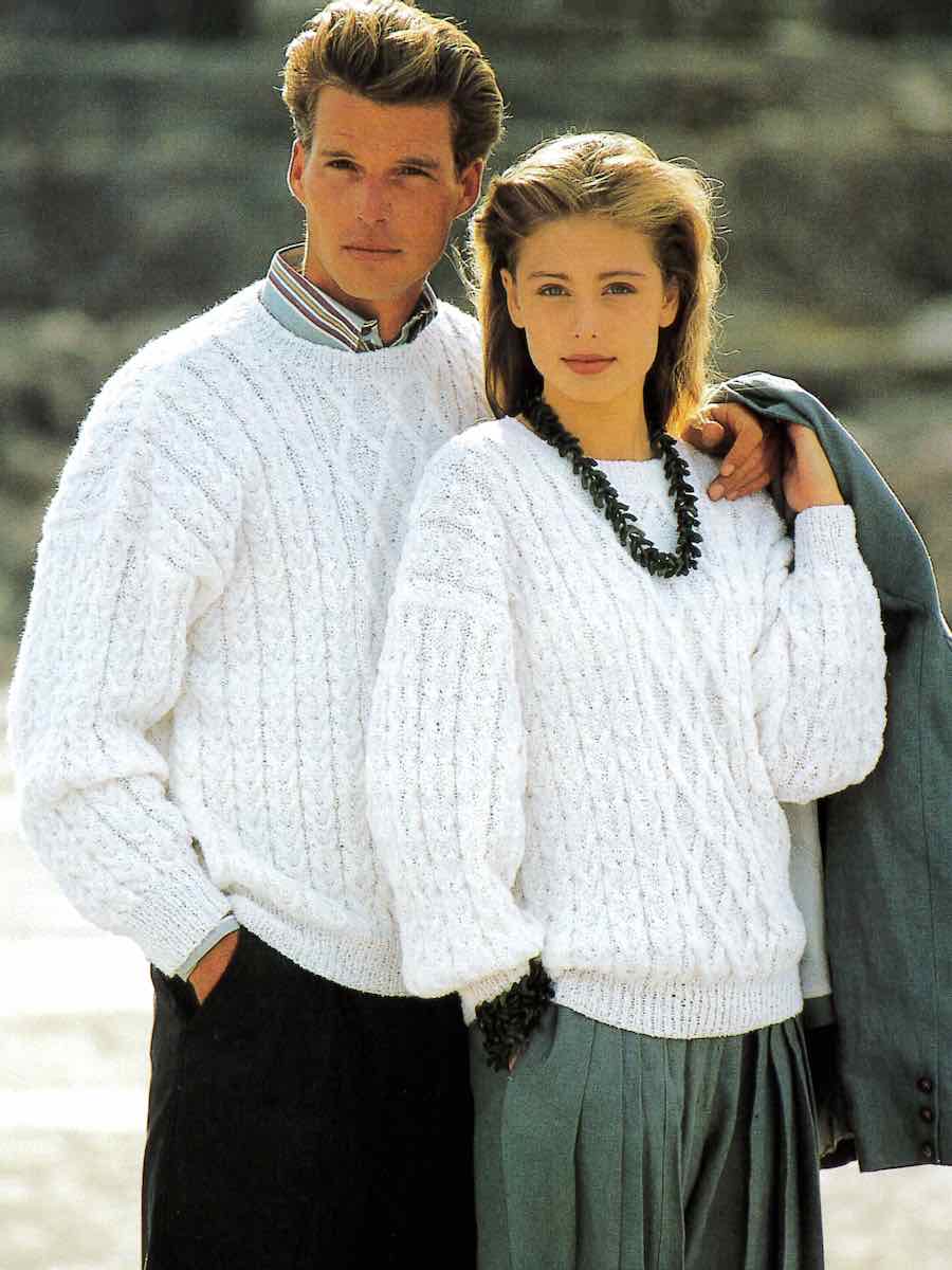 Trøjerne strikkes på traditionel vis i dele. Sjovt arbejde, hvis du kan lide at strikke fletninger. Flere variationer af fletninger udgør en fin kombination.
