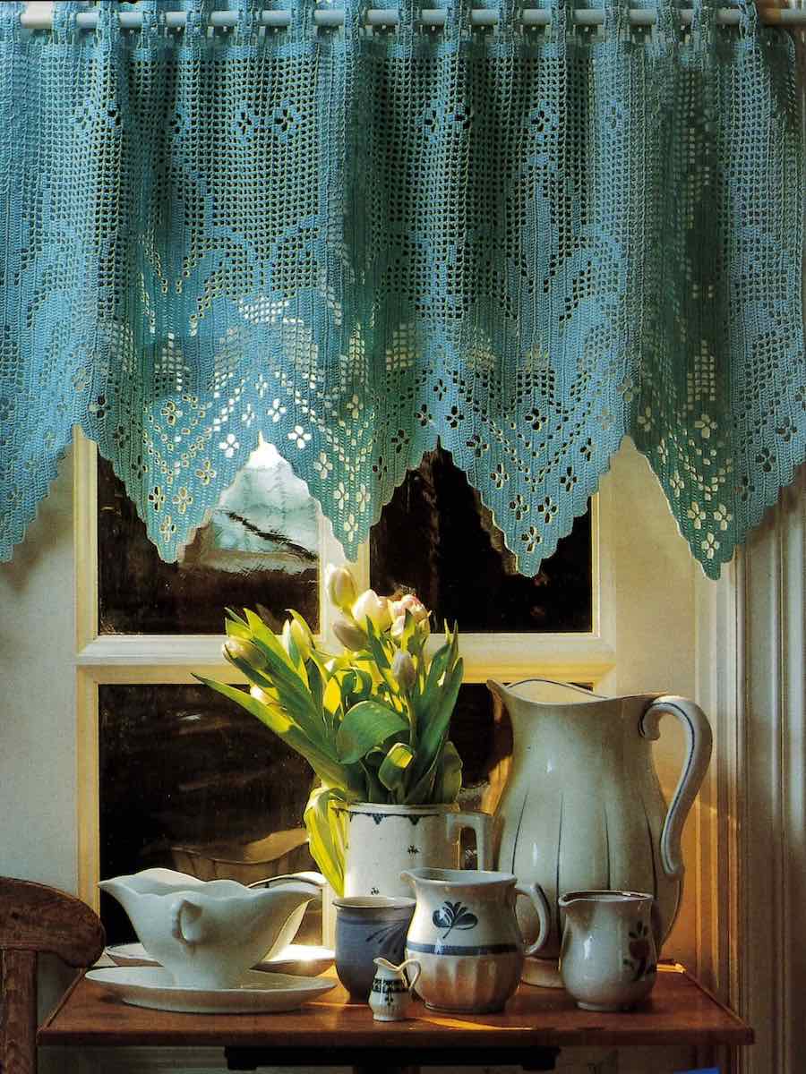 Gardinet består af luftmaskebuer og stangmasker, der danner et luftigt ternmønster. Arbejdet hækles frem og tilbage over et bestemt antal masker og bygges op ved at tage ud og ind.