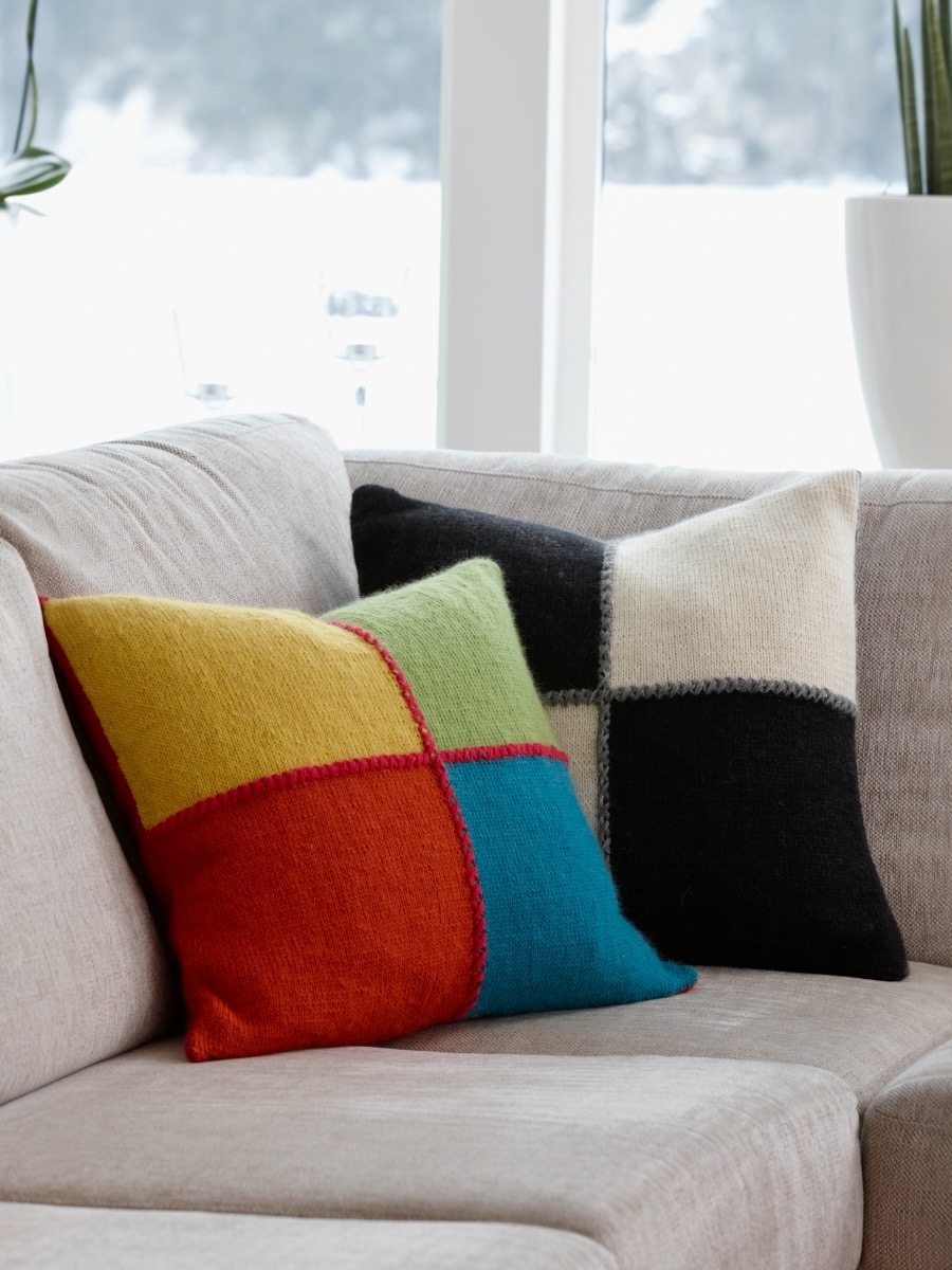 Puderne er strikket i M&K Eco Baby Wool og M&K Eco Baby Wool Color.