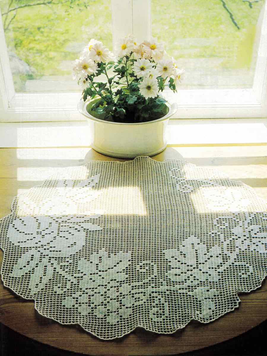 Hækl en smuk dug. Med klare diagrammer og hækleforklaringer er den perfekt til dem, der ønsker at skabe noget tidløst med dobbeltmasker og luftmasker.