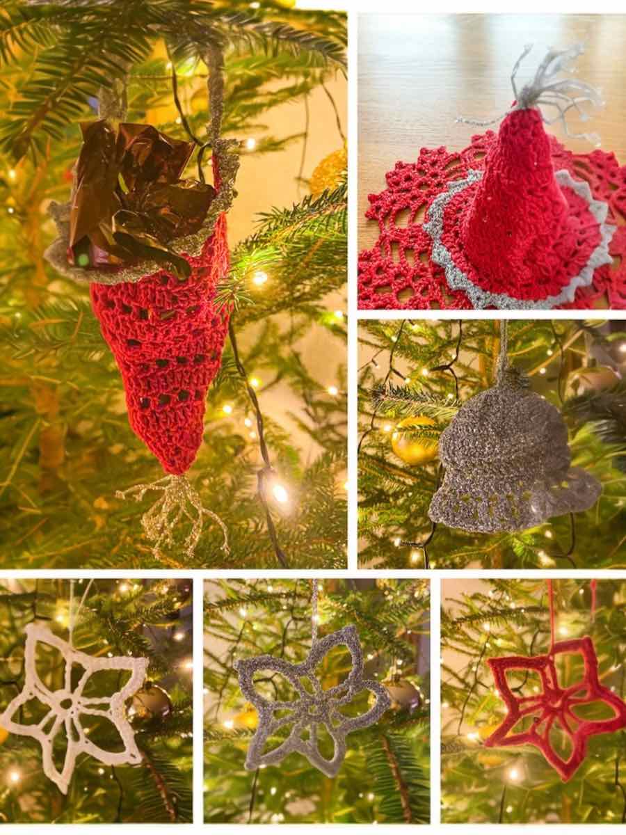 Søde små hæklede dekorationer. Fantastisk kreativt arbejde for voksne og børn til at pynte juletræet.