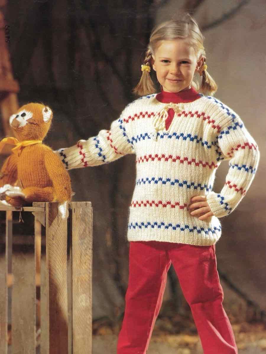Børnenes yndlings letstrikkede fisketrøje eller pepitrøje, der traditionelt er strikket i fire dele, der er syet sammen.