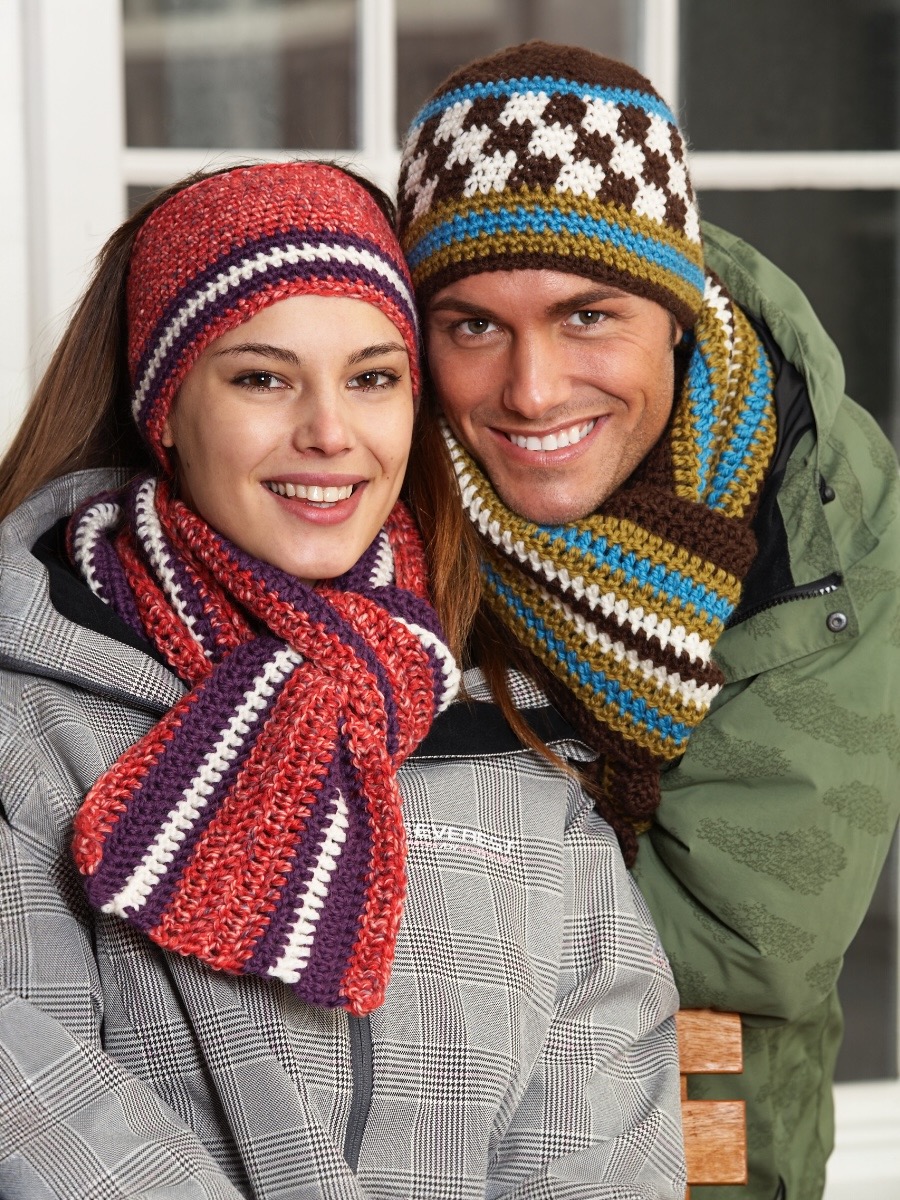 Hæklet hue, pandebånd og tørklæde