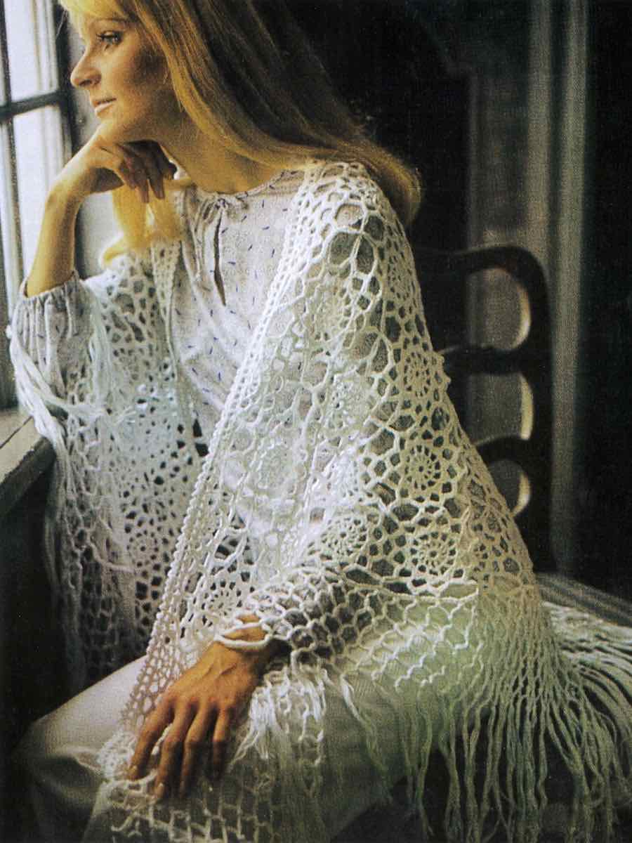Hæklet sjal i Bianca (100% merceriseret bomuld), ca. 175 × 120 cm. Hækl fra hjørnerne i et skakbrætmønster med stangmasker og luftmasker efter diagrammet. Halve firkanter afslutter kanterne. Nem montering – fastgør tråde og bind frynser. Velegnet til både begyndere og erfarne hæklere.