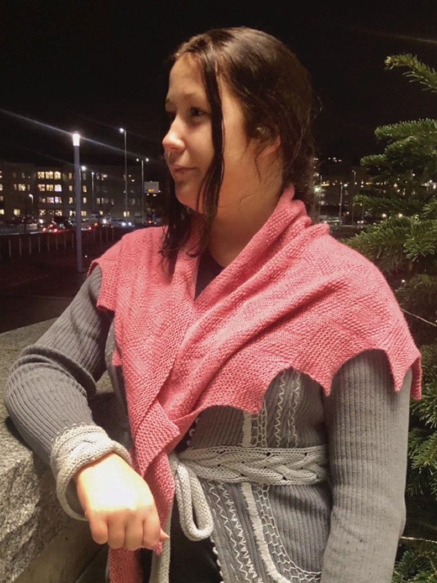 Mønstret sjal , der strikkes efter et diagram, der gradvist former sjalet.