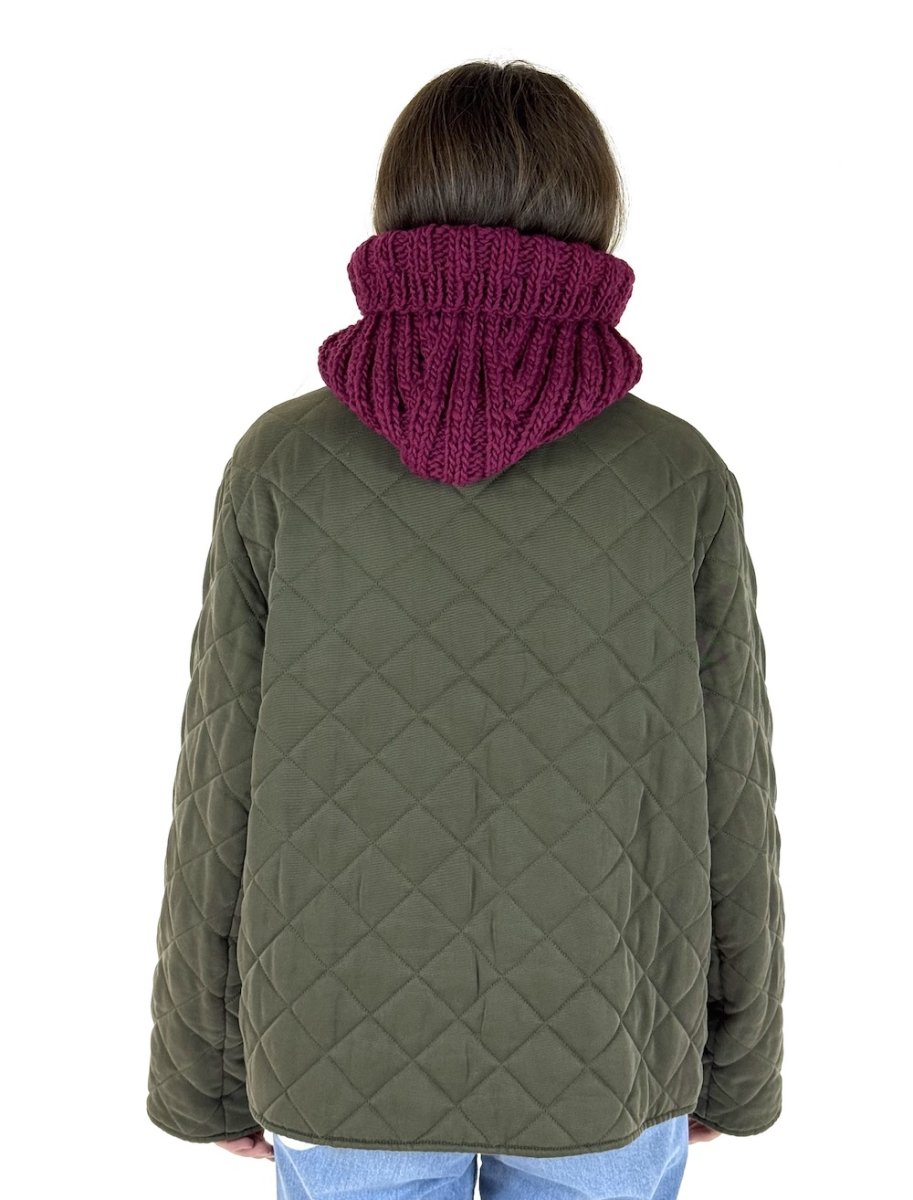 Balaklava strikket frem og tilbage i rib. Form balaklavaen ved at lukke ind midt bagpå, sy den sammen og tag derefter masker op til halsudskæring. Strik rundt i rib til ønsket længde og luk løst af.