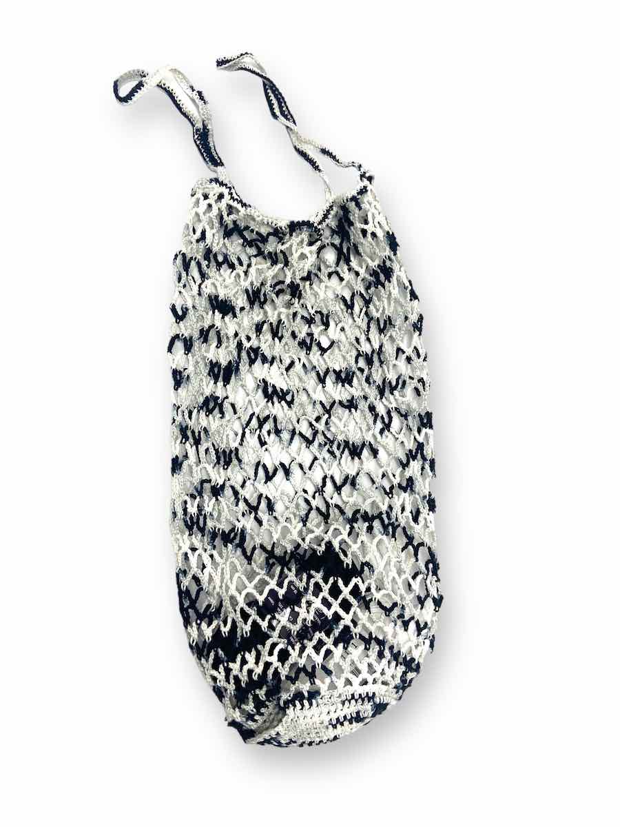 Hæklet taske som du ruller sammen til en lille kugle, der er gemt i bunden af tasken.